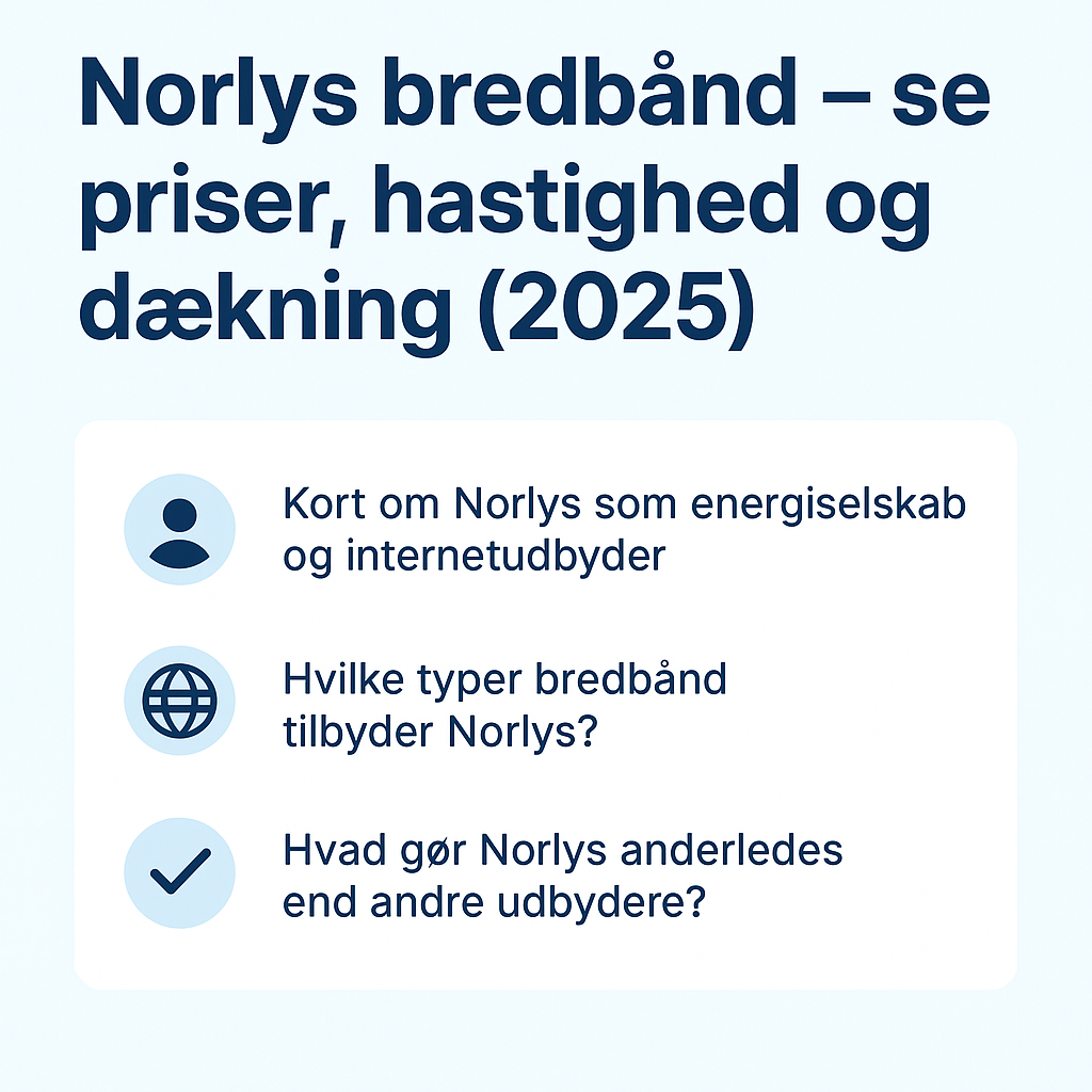 Norlys tilbyder både fiber og mobilt bredbånd med fokus på stabilitet, hastighed og fleksible priser. Se de nyeste priser, abonnementstyper og hvordan Norlys klarer sig mod konkurrenterne i 2025.